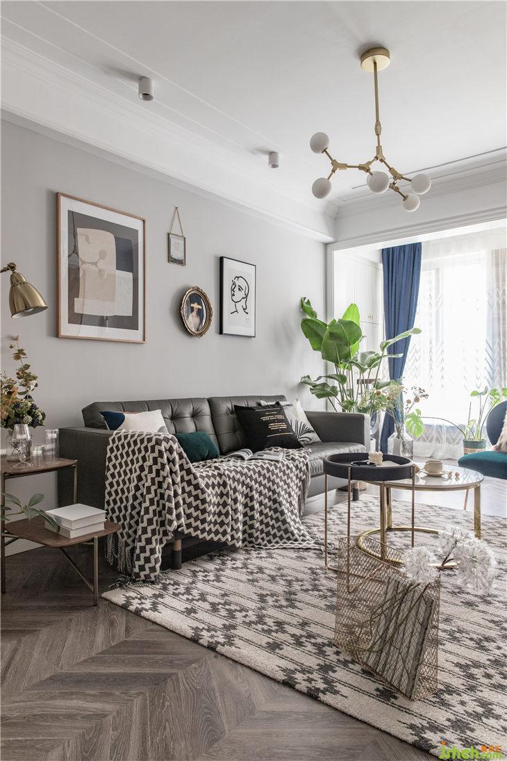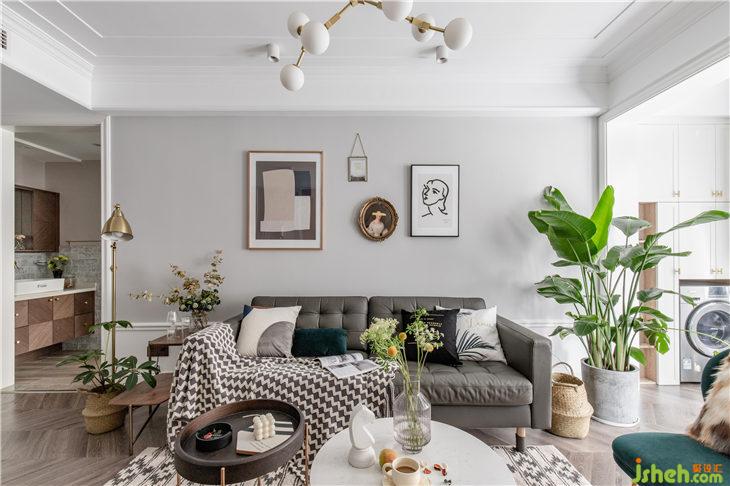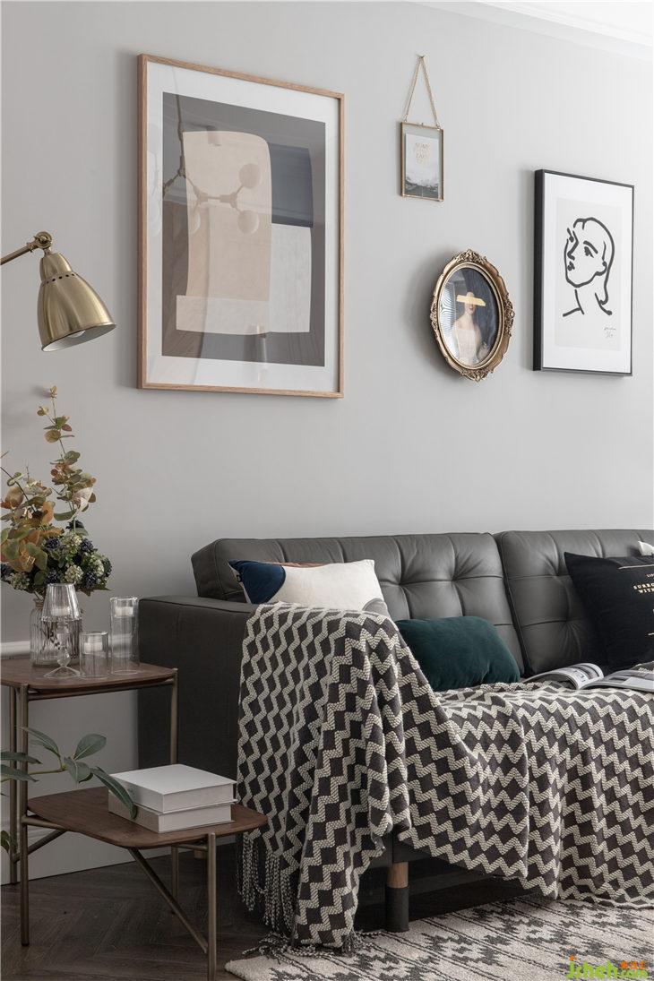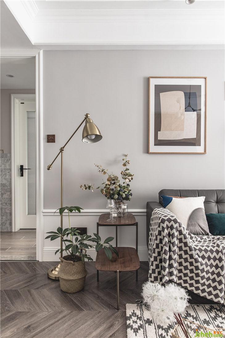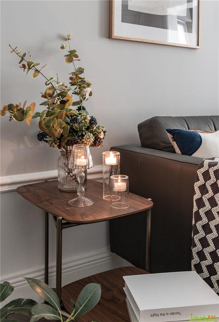 沙發(fā)一角,有設(shè)計感的落地?zé)?,生機(jī)勃勃的綠植,高低層次的胡桃木邊幾,舒適感就是在這簡簡單單的擺設(shè)中營造出來的。