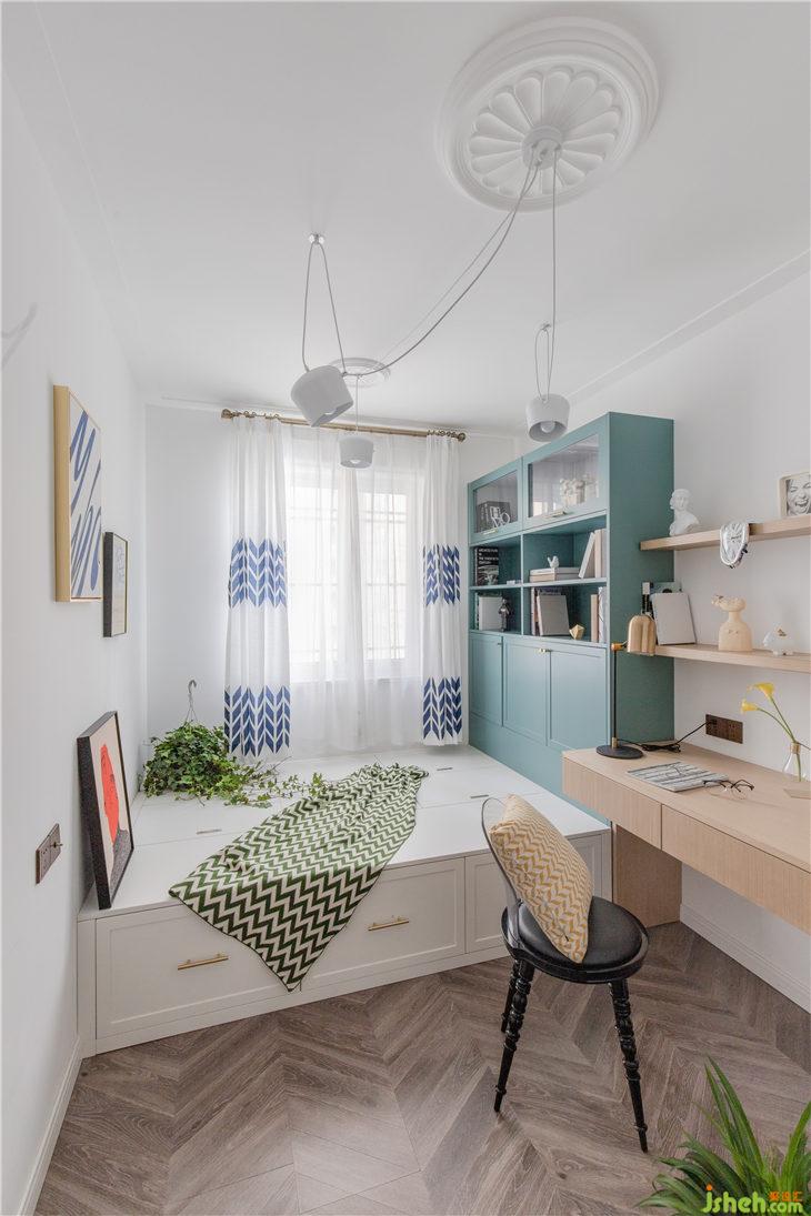 父母只是偶爾過(guò)來(lái)小住,次臥還是以功能性為主,榻榻米有效增加了空間的存儲(chǔ)量,同時(shí)還兼具書房的功能,現(xiàn)在是父母居住,等有了小寶寶,亦可以作為兒童房更迭使用。