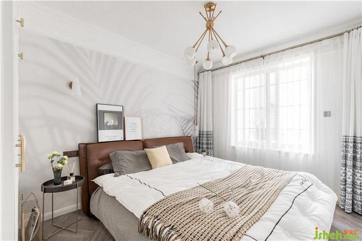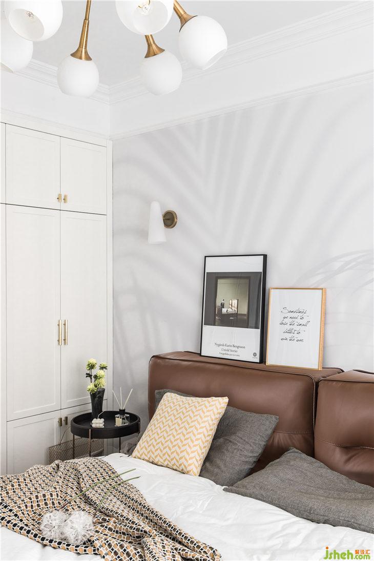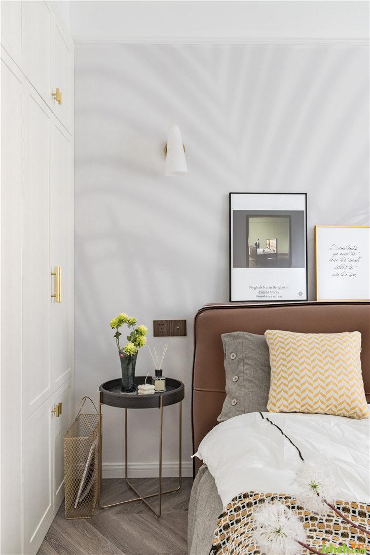令人舒適的主臥空間,沒(méi)有過(guò)多的裝飾表現(xiàn),淡淡的枝葉剪影素色壁畫(huà),大面積留白的墻面,為的是一份慵懶撒入室內(nèi)的陽(yáng)光及那還在追逐的夢(mèng)想。