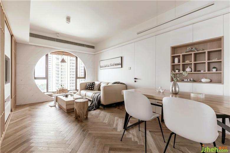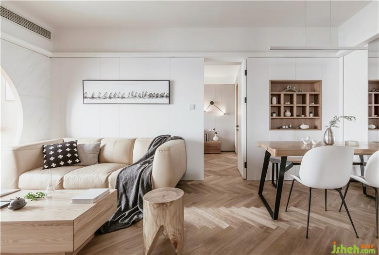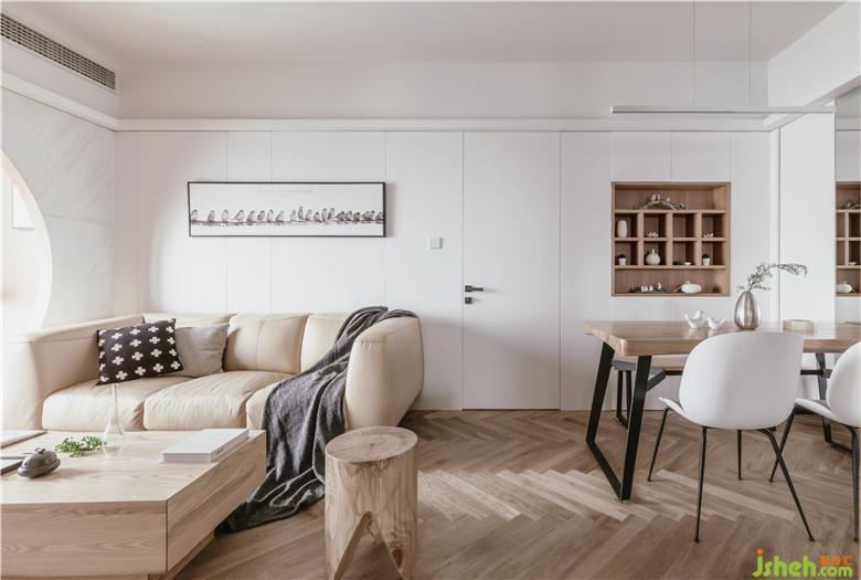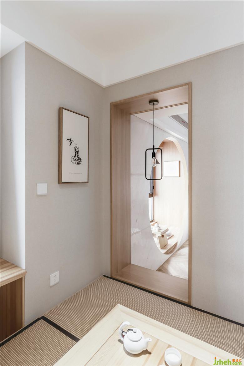 本案例是業(yè)主為父母精心挑選的高層江景房,在11樓的陽臺處,可以俯瞰到廣闊的濱江風景,因此在設(shè)計中,我們也將外景與室內(nèi)的設(shè)計相結(jié)合,同時選擇和室風格,貼合業(yè)主父母的審美需求,大量KD板木飾面、木地板和白色護墻及乳膠漆搭配,也使空間更具安逸寧靜的氛圍。