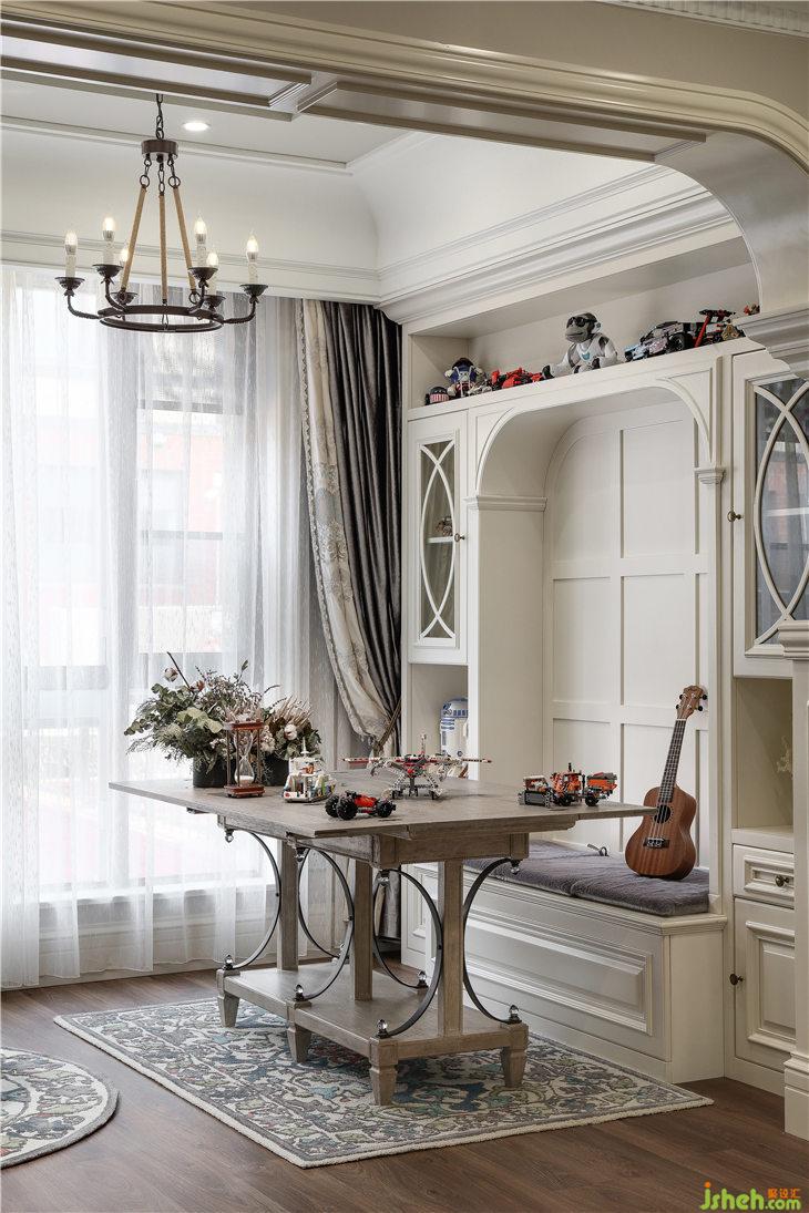 餐廳的家具,來(lái)自美克美家ART系列,米灰色調(diào)的復(fù)古美式風(fēng)格,褪去了傳統(tǒng)美式家具冗雜的造型,與我們經(jīng)典美式硬裝基調(diào)完美的融合。