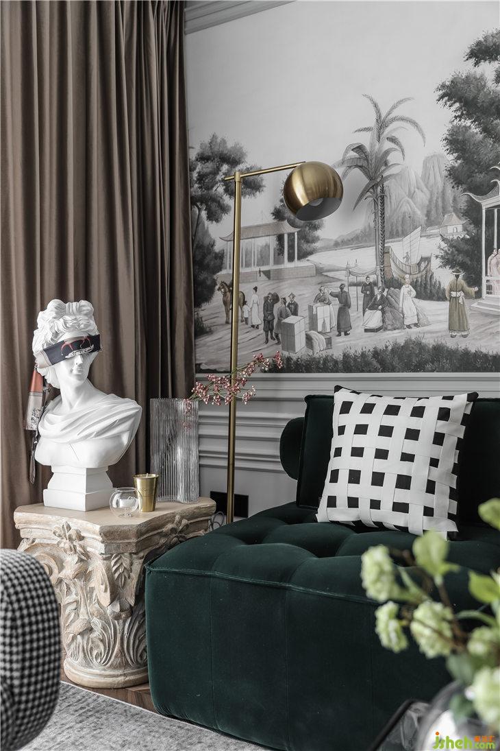 茶幾,我們沒有選擇儲物樣式的,會與比較厚重的主沙發(fā)沖突,玻璃材質(zhì)的茶幾臺面,結(jié)合纖細的金屬腿,材質(zhì)感是沉著穩(wěn)重的,視覺上是通透輕盈的感受,融合整體復古味道的家具,現(xiàn)代與懷舊在空間的每個角落都不期而遇。