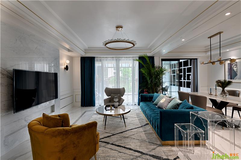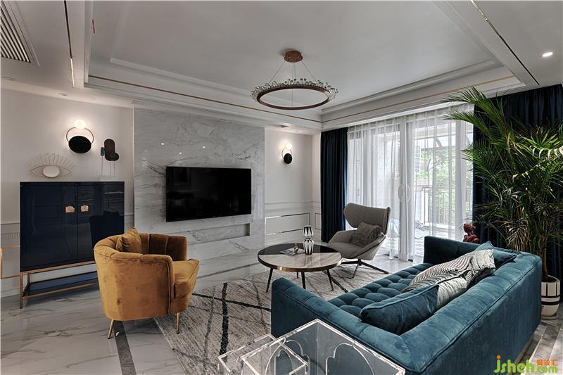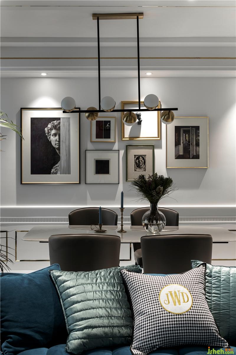輕奢風(fēng)格中常用的材料,如大理石、黃銅元素、絲絨、皮飾、瓷磚等,都可以經(jīng)過巧妙的混搭與組合,讓空間的奢華感上升到一個新的高度,打造出深受年輕人喜愛的現(xiàn)代家居。比較基礎(chǔ)的大理石瓷磚搭配大量的金屬元素、石膏線條,再加上一些閃亮的裝飾元素作為點綴,輕松、優(yōu)雅、知性,又能很好體現(xiàn)出輕奢風(fēng)格之美。