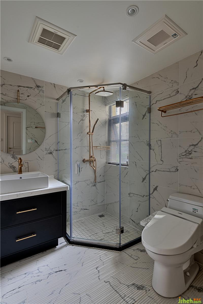 衛(wèi)浴空間色彩搭配干凈,干濕分離將淋浴區(qū)與其他功能區(qū)域進(jìn)行劃分,既可保持衛(wèi)浴場(chǎng)地的干燥衛(wèi)生,又能維持浴室整體環(huán)境的整潔美觀。