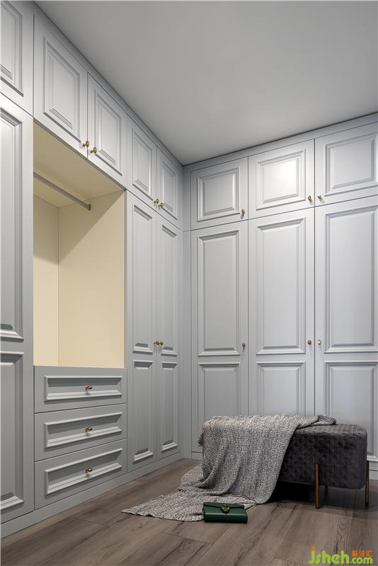 主臥連接著衣帽間,動線設計方便,白色衣柜款式美觀大方且儲物空間驚人。女主人說自己特別不喜歡生活用品裸露在外,所以收納需求較大。
