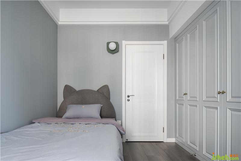 兒童房的床靠墻布設,不僅充分利用房屋的特點,而且更加安全。隨著孩子年齡的增加,儲物需要也會越來越多,所以兒童房也設置了一整面的柜子。