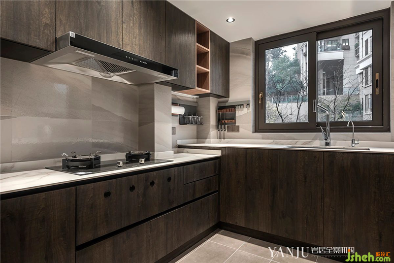 為了整體風(fēng)格的統(tǒng)一,采用了全套嵌入式冰箱與蒸烤箱。