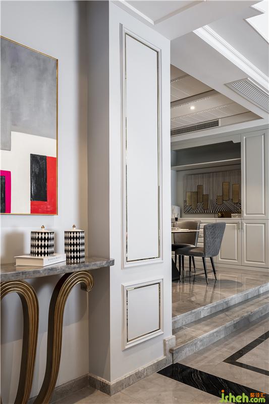 設(shè)計(jì)師硬裝上的線條運(yùn)用像一條條完美的分割線,加上軟裝上沙發(fā)燈具等的巧妙搭配,整個(gè)空間呈現(xiàn)出細(xì)膩而華麗的色彩。