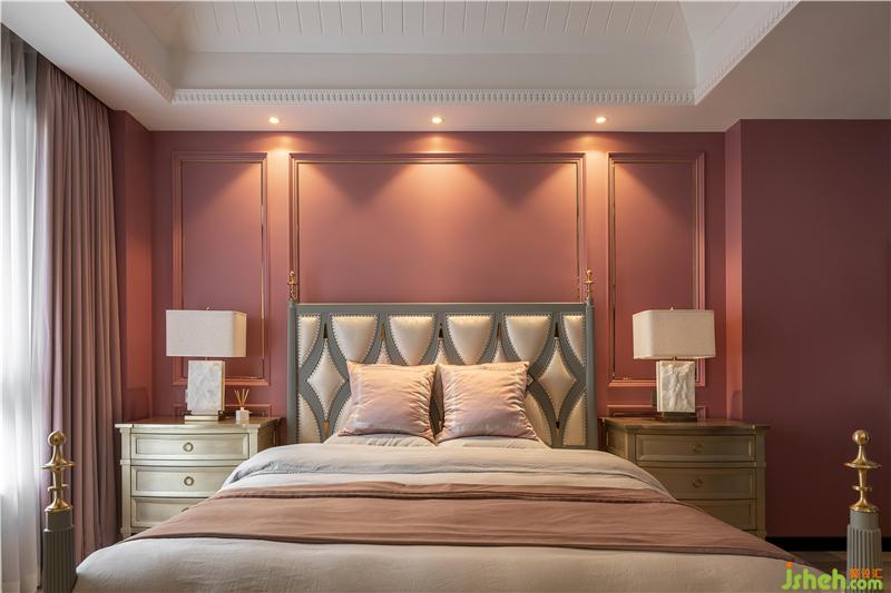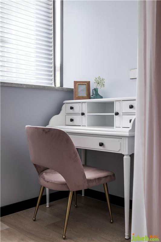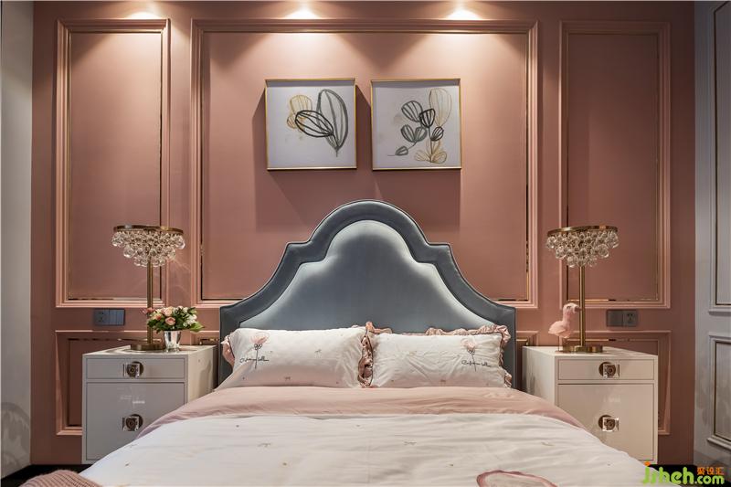 女兒房是精致夢(mèng)幻的,背景色是比主臥淺一點(diǎn)的藕粉,搭配灰藍(lán)色的床,溫柔的色彩為空間增添了寧靜。