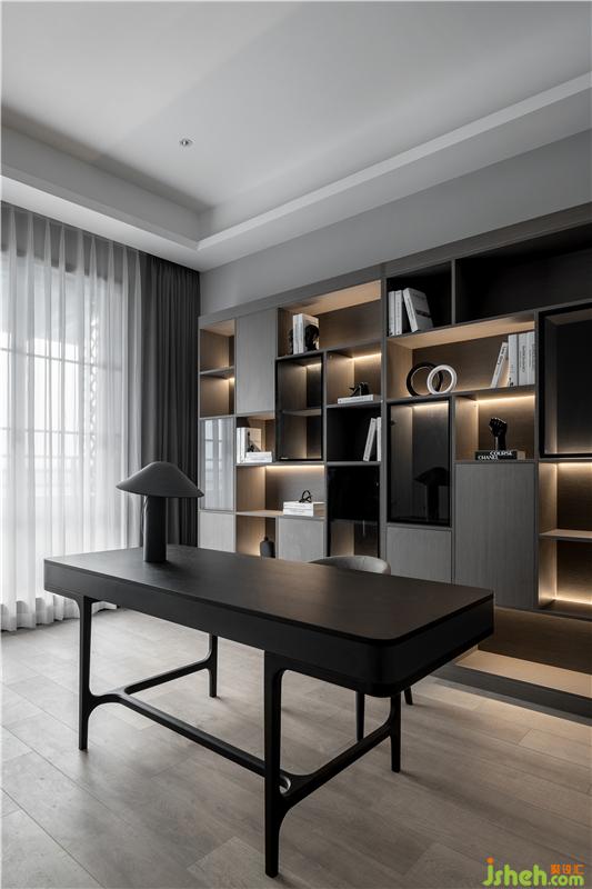 書房不僅僅是一個(gè)辦公的區(qū)域,也可以是一個(gè)獨(dú)自思考的空間。木質(zhì)的大書桌,舒服的椅子,為業(yè)主營(yíng)造了一個(gè)安靜舒適的思考空間。
