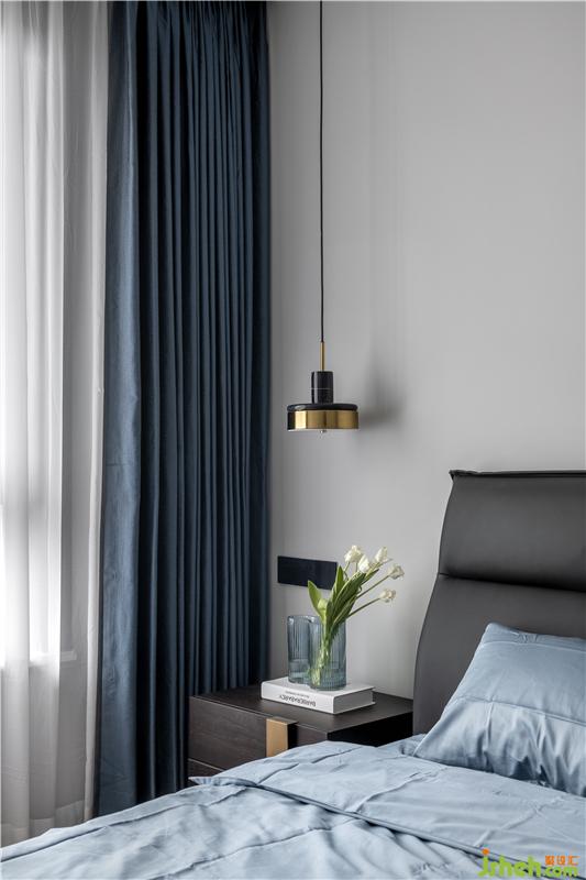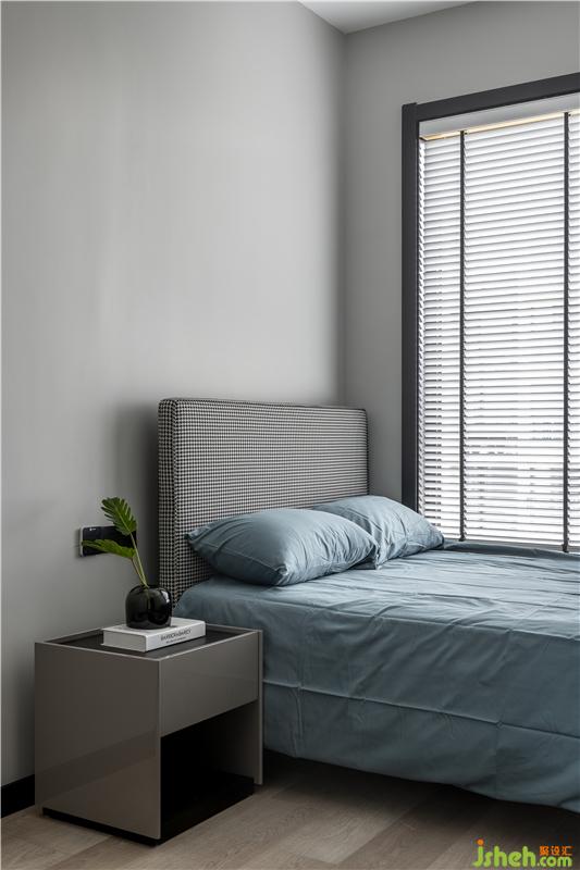 老人房是為業(yè)主父母偶爾過(guò)來(lái)小住準(zhǔn)備的,靜謐的藍(lán)色為老人營(yíng)造出了一個(gè)舒適的睡眠空間。