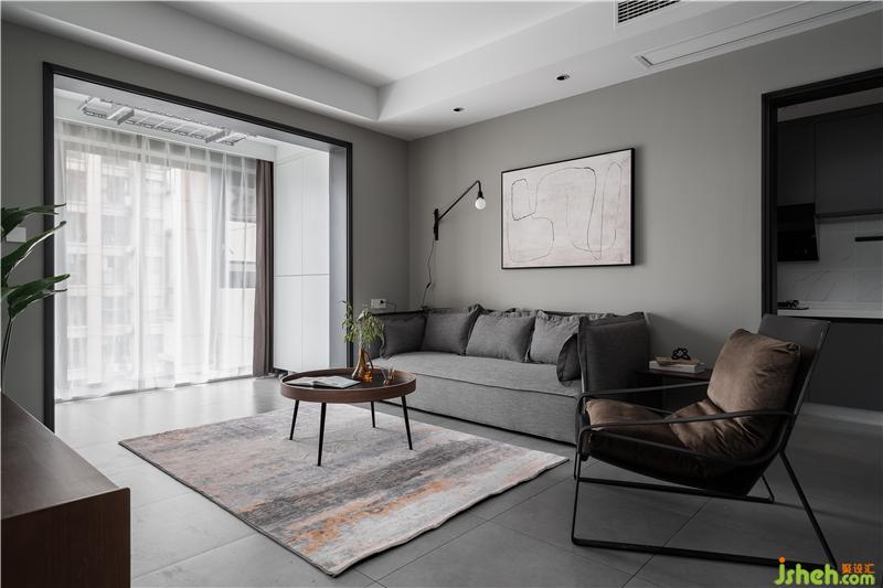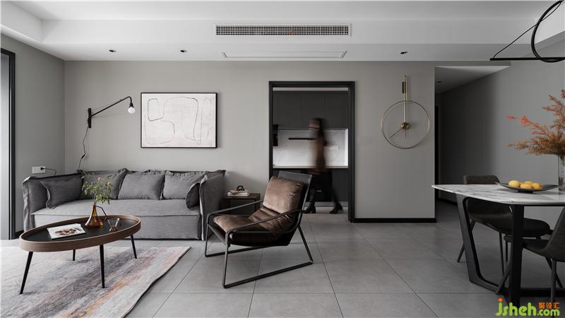 淺灰色沙發(fā),輔之一把棕色單椅,沉穩(wěn)的氣場(chǎng)直接hold住全場(chǎng),再加上現(xiàn)代感很強(qiáng)的掛畫(huà)和黑色金屬壁燈,整個(gè)客廳裝修設(shè)計(jì)彰顯著簡(jiǎn)約藝術(shù)的氣息格調(diào)。