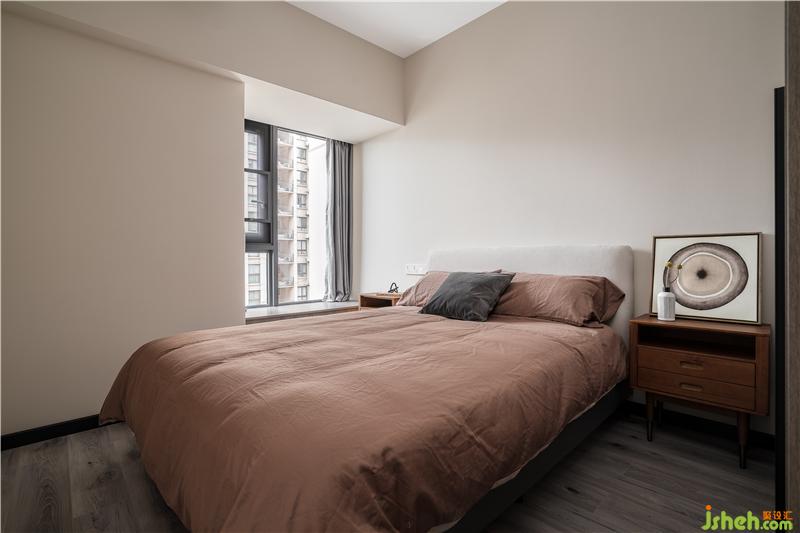 粉色永遠是浪漫的主題,配上深色的家具,讓房間更有質感,小飄窗讓臥室更加明亮。