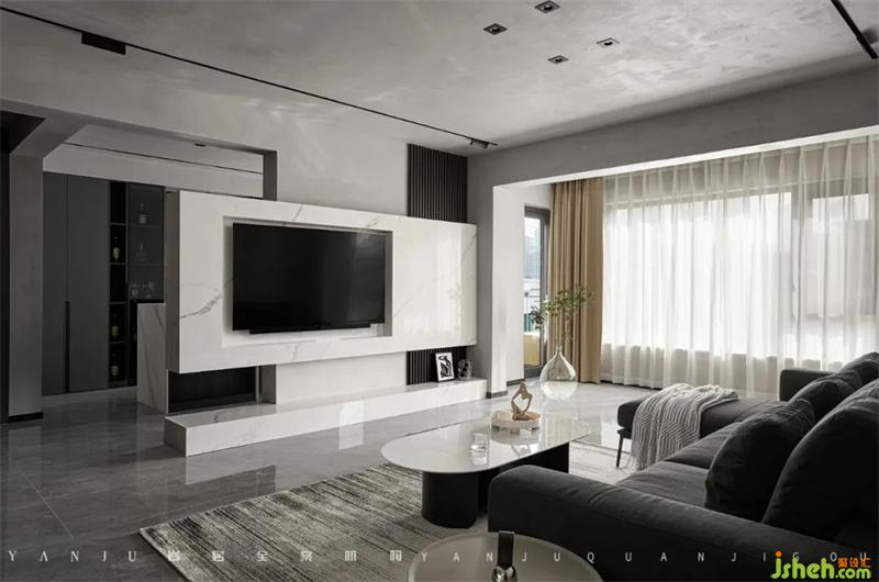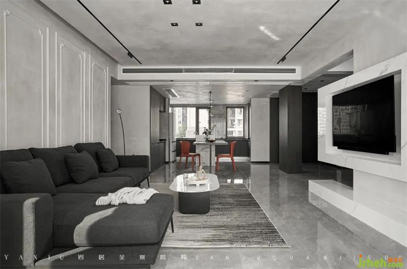 After the overall adjustment of the structure, the public area has been enlarged nearly twice in terms of visual space.The top surface of the wall ensures the consistency of the material, and the ground should also maintain the integrity, and try not to have clear dividing lines. Therefore, the designer chose similar beauty stitching colors to soften the dividing line as much as possible.