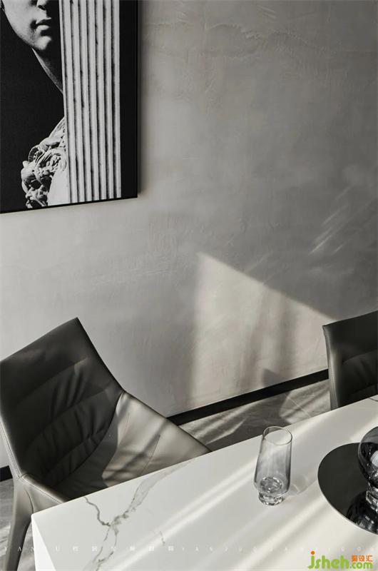 裝修設計結(jié)構(gòu)整體調(diào)整后的公區(qū),視覺空間上擴大了接近兩倍。墻頂面保證了材質(zhì)的一致性,地面也要保持整體性,盡量不要有明晰的分割線。所以設計師選用了相近的美縫顏色,盡可能地去柔化分割線。