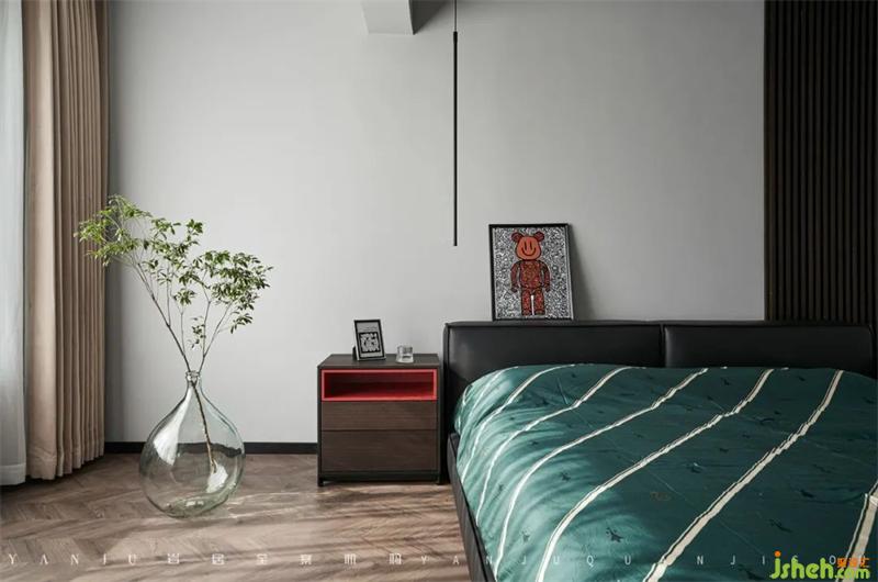The master bedroom and cloakroom use smoked wood grain as the theme color, giving the private space a more mysterious texture.