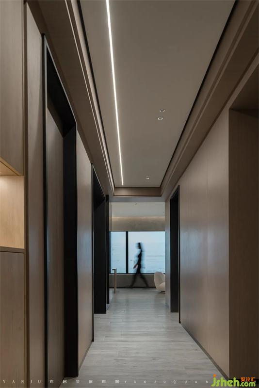 內(nèi)包進(jìn)來的陽臺做成了全落地窗的形式,一來優(yōu)化采光,二來方便公共區(qū)域的通風(fēng)。