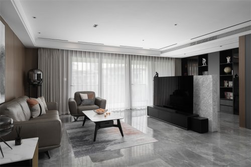 客廳布置簡潔,小型家具給家人留出更多活動空間,同時擴展視覺效果,顯得通透舒適。墻面木飾面板豐富空間層次,完善風(fēng)格表達(dá)。