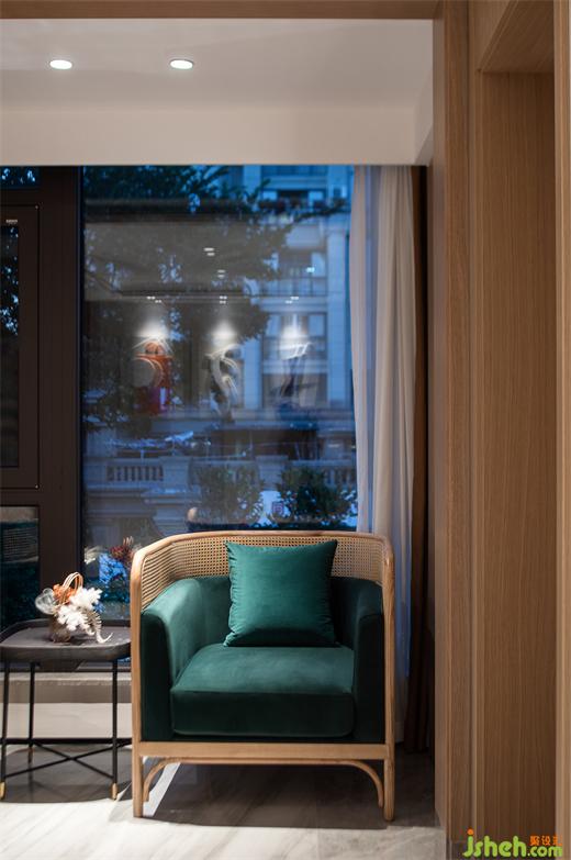 客廳地面大體塊的棉麻材質邀請著人們席地而坐,滿足孩子活潑的天性,人與空間更隨性而自由的產生交互。
