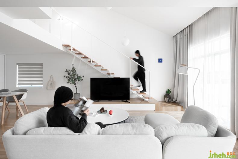 原始現(xiàn)狀_閑置的頂樓空間,沒有功能和情景支撐。住宅設(shè)計針對現(xiàn)狀,我們加入了日常必需的功能,應(yīng)對原有的空間柱將其收納到墻體內(nèi),大物件儲藏功能暗藏到吊頂余量里,除此之外我們希望主體空間盡可能的靈活,純凈。在日常功能區(qū)我們別有用心的將層高控制到2.2米,與之相反的樓梯間及起居空間的層高我們盡可能的還原到最大化,裝修設(shè)計反差之下是明晰的空間,也伴隨著細膩的心情變化。在空間高度余量中我們加入了半層閣樓,滿足多層次的活動需求同時提升空間感受。