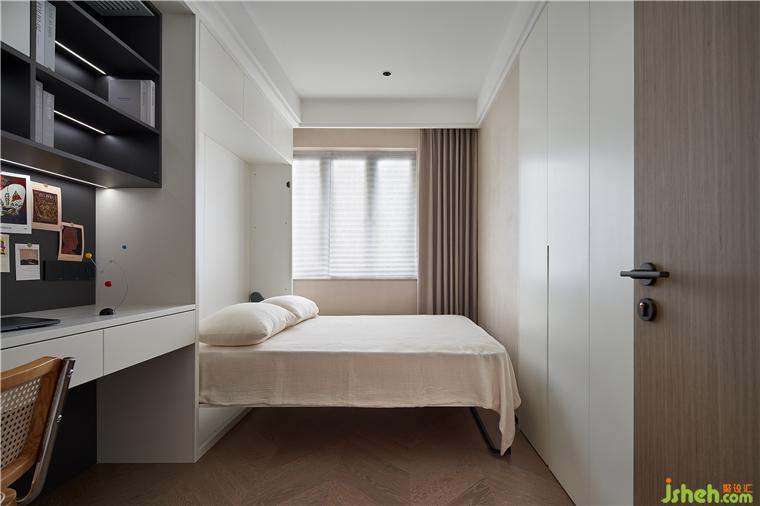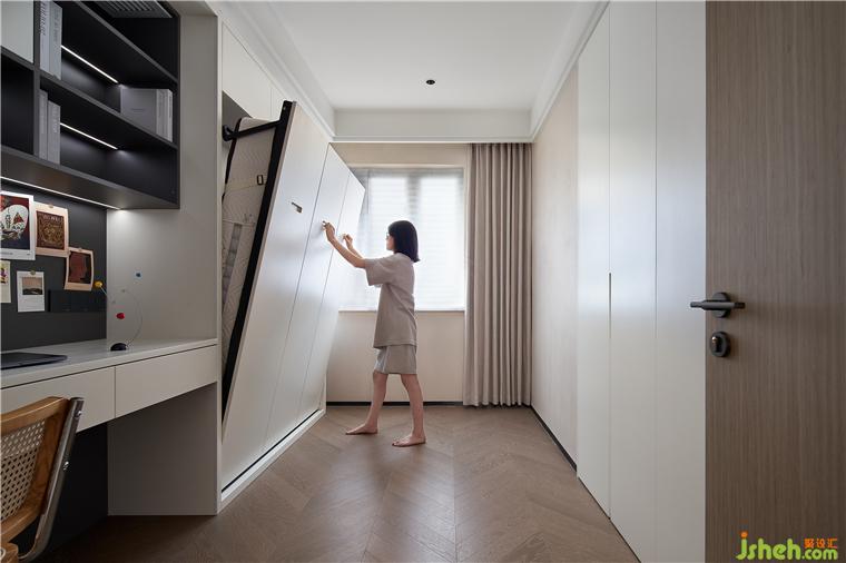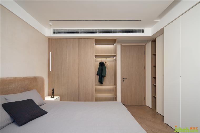 3.主臥向功能房借位分隔出衣帽間,滿足業(yè)主日常衣物、鞋包的收納,精致生活更進(jìn)一步: