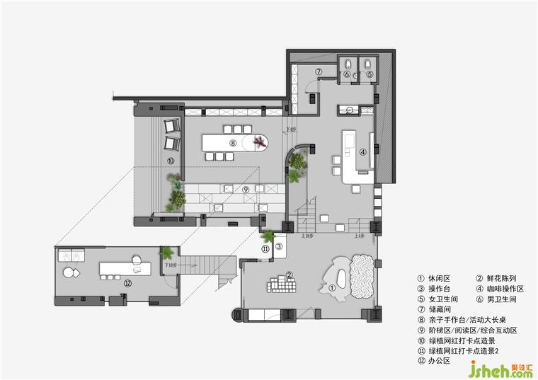 內(nèi)部分為綠植花藝空間,休閑區(qū)、社交吧臺、綜合活動區(qū)等,囊括綠植花藝、親子教育(手作)、親子互動、花藝教學(xué)課程、讀書交流會、品牌發(fā)布、行業(yè)沙龍、公司團建、活動落地等多功能復(fù)合商業(yè)模式的空間。