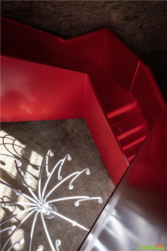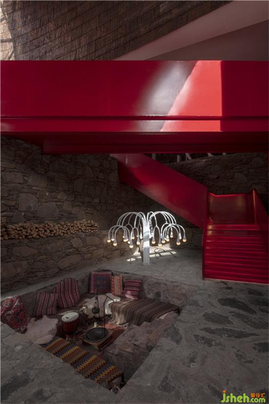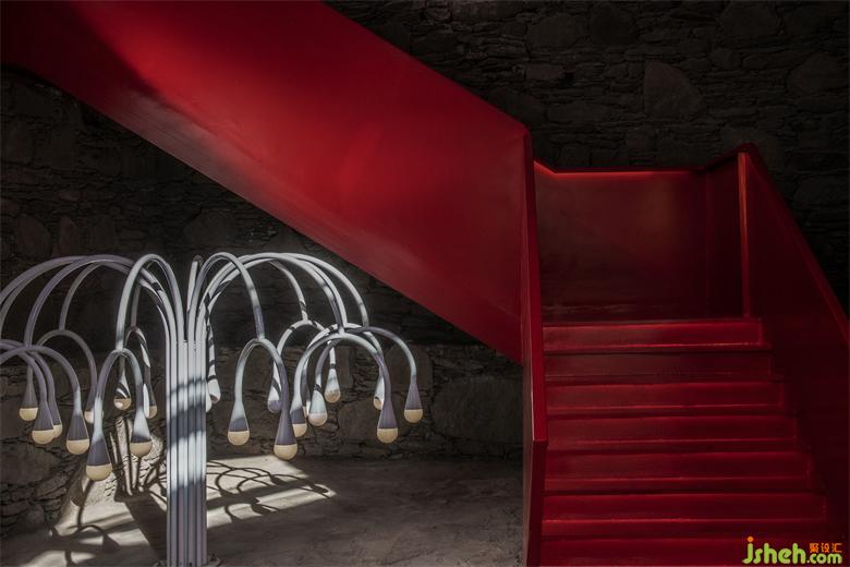 圖騰化的紅,用在接待休閑區(qū)的樓梯上,格外吸睛與耀眼。