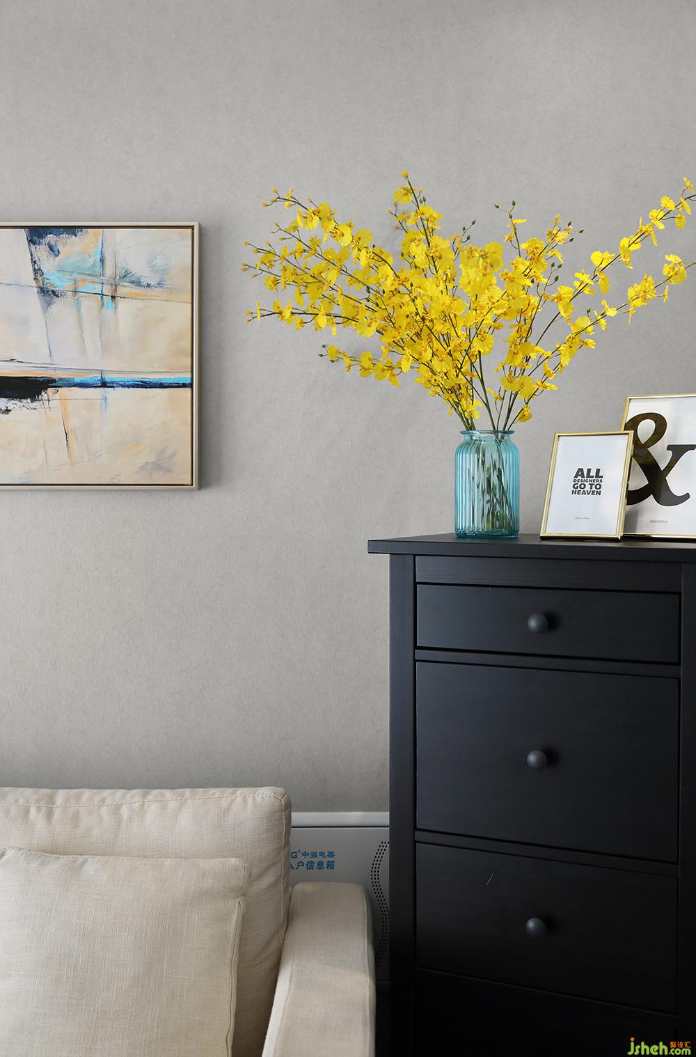 家庭的簡約不只是說裝修,還反映在家居裝飾上的簡約,比如不大的屋子,就沒有必要為了顯得“闊綽”而購置體積較大的物品,相反應(yīng)該就生活所必需的東西購買。在色彩上面,客廳的墻面運(yùn)用了低純度低明度的灰色墻紙,顯得客廳的空間很寬敞。臥室的墻面采用了深綠色的墻紙,打破的傳統(tǒng)的思路,設(shè)計師大膽的運(yùn)色,臥室整體看起來