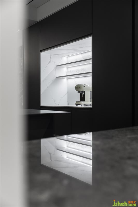 借助戶外花園景觀,設(shè)計師小有心機的運用電動陽光頂和側(cè)立玻璃窗。打開自然光的普照及微風(fēng)的攝入切換流通。