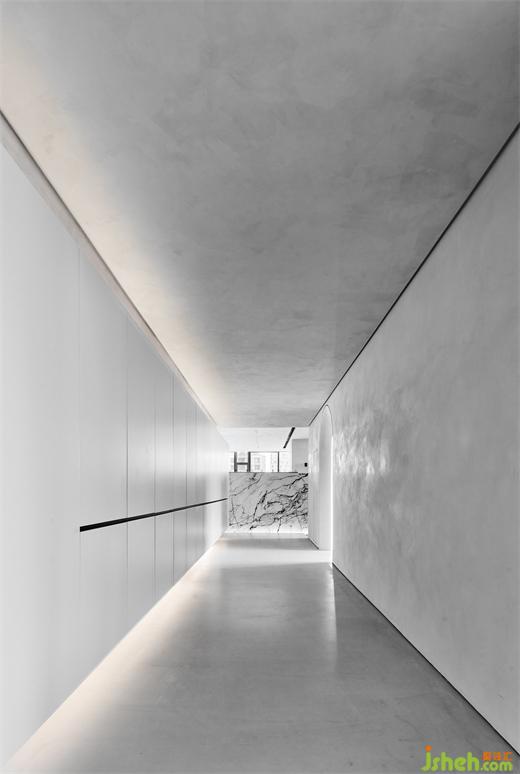 正如高技派代表人物理查德·羅杰斯所言:“建筑是捕捉光的容器,就如同樂器如何捕捉音樂一樣,光需要可使其展示的建筑?!睙o論是過道,亦或是辦公區(qū),一條貫穿其中的主線便是光與影。通過對光影的巧妙運用,將每一天、每一分、每一秒的微妙變化都展現(xiàn)在空間中,辦公室設(shè)計展示了建筑美學(xué)上的對比與統(tǒng)一。