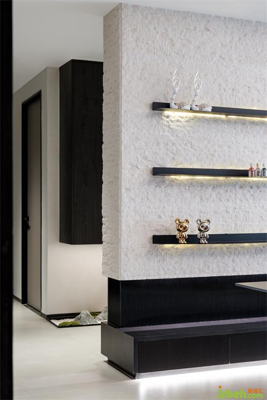 荔枝面石材的長(zhǎng)方形壁龕,其造型與另一側(cè)公區(qū)連接處的通道相呼應(yīng),恒大御景半島裝修設(shè)計(jì)打破沙發(fā)背景墻的單調(diào),也讓空間更具聯(lián)動(dòng)性和秩序感。
