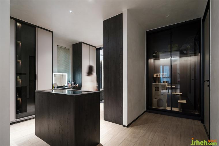梳妝臺(tái)放置在衣帽間內(nèi),方便女主人在此化妝和搭配衣服。恒大御景半島裝修設(shè)計(jì)右側(cè)是家中愛寵的專屬空間,貓咪可以躲在此地玩耍打盹而不受打擾,也可經(jīng)過(guò)貓咪專屬通道進(jìn)入臥室叫賴床的屋主起床。
