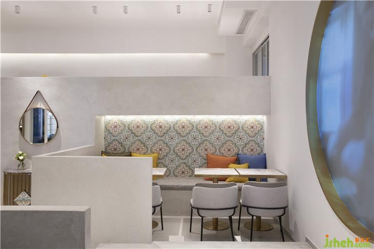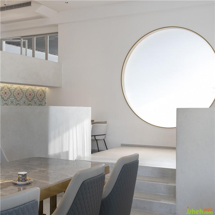 花磚和咖啡一樣,都起源于阿拉伯世界,通過海洋線路進行傳播。地中海,伊斯蘭文明里,對于馬賽克,水磨石,幾何線條,花磚的使用,是值得每一個設(shè)計師去探究的。我們在面對這個案子的時候,從空間層次上先重新構(gòu)建了一個地中海式的小城堡。區(qū)別于歐洲式的古典建筑,伊斯蘭世界的小城堡的空間立面線條更為干脆利落,也更符合現(xiàn)在的審美。而水磨石立面的完整性,細節(jié)的肌理感更能表現(xiàn)這樣的“簡約而不簡單”。