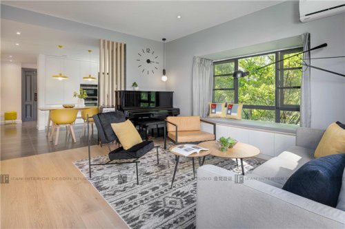 本案在空間改造上將書房的墻體拆除與客廳合并,并設(shè)計(jì)木質(zhì)吊門,可以自由靈活的切換空間狀態(tài)(封閉與開放);軟裝設(shè)計(jì)上主要以淺色系(木色和白色)為主,精挑細(xì)選的自然舒適的材質(zhì)填滿空間,打造一個(gè)寬闊通透、簡(jiǎn)約自然的居住空間室內(nèi)裝修設(shè)計(jì)。