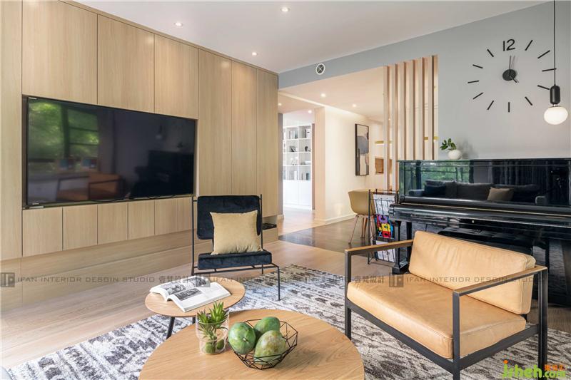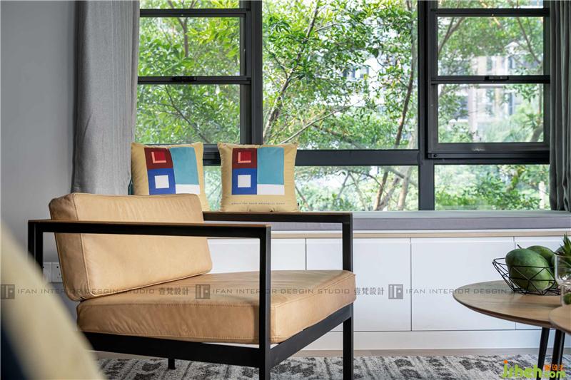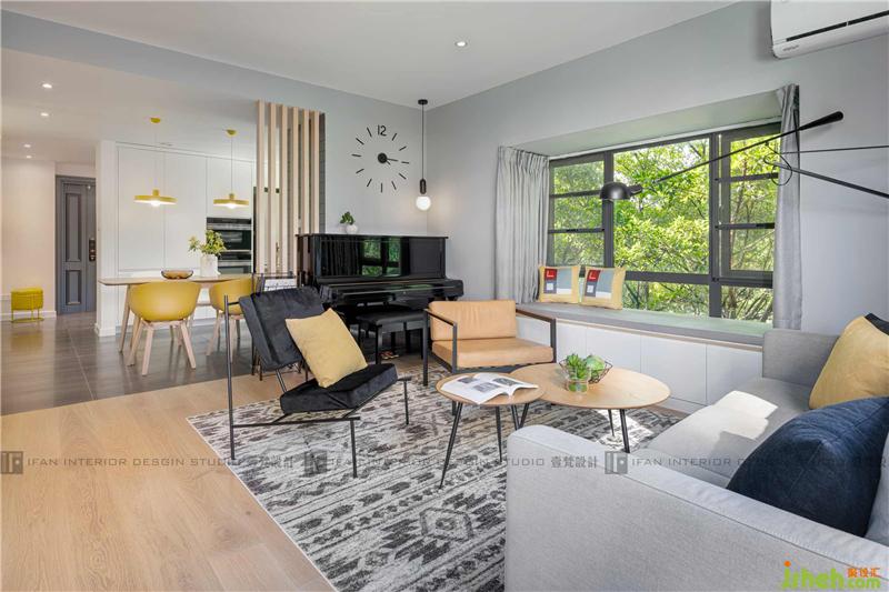 設(shè)計(jì)師改變?cè)瓉?lái)沙發(fā)背靠窗臺(tái)的囧狀,轉(zhuǎn)變沙發(fā)擺放方式,設(shè)計(jì)飄窗沙發(fā),大大提高客廳的利用率,沙發(fā)、茶幾、單人椅、1.5米鋼琴,有序陳列在客廳里,空間自由靈活。
