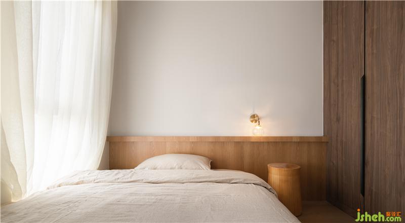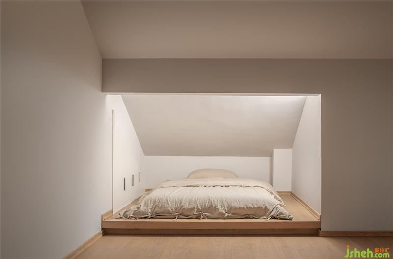 主臥室地面抬高采用地臺上面放置床墊的方式來減少空間壓迫感增加舒適度,合理的利用空間擺放衣柜,有限的空間內(nèi)最大化的儲存衣物。