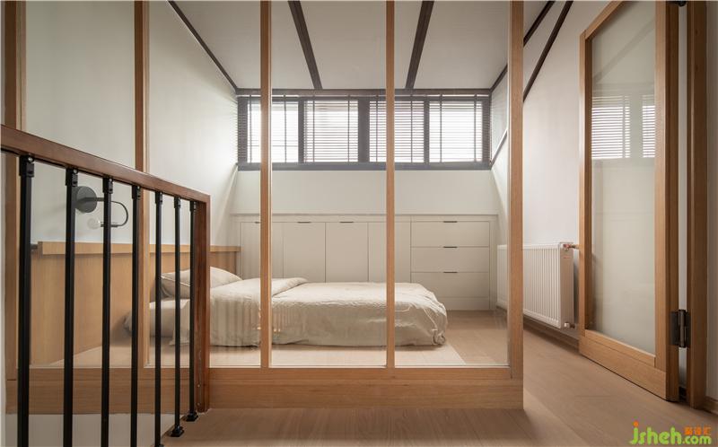 兒童房閣樓空間采用玻璃窗來進行隔斷,將閣樓的采光做到極致,同時利用矮小窗下作為儲物空間。