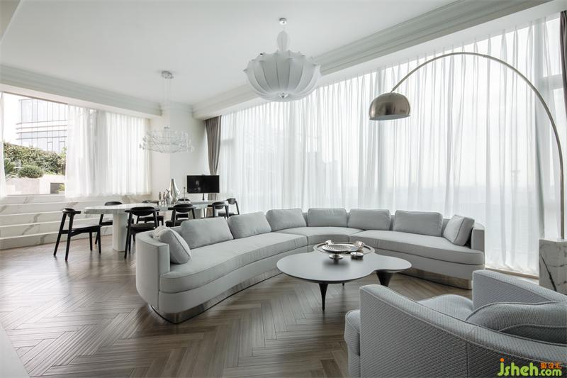 Living room space meets the needs of owner and guests, but does not lose its gentleness and elegance.