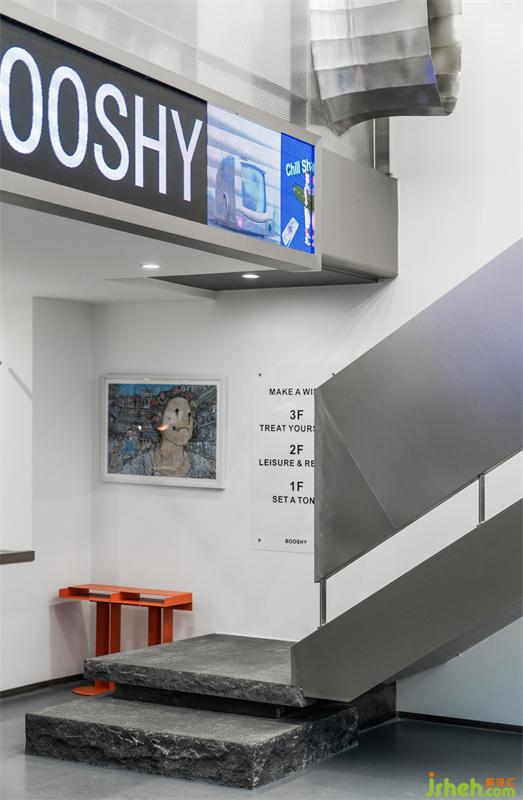 留白的墻體,金屬材質(zhì)的點(diǎn)綴,表面粗糙的石材,三者巧妙的配合形成了這個(gè)空間獨(dú)有的魅力。