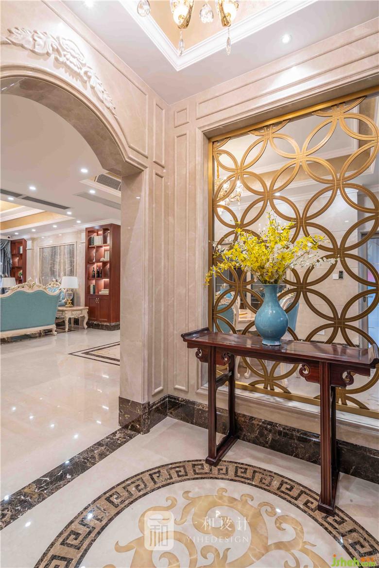 室內(nèi)設(shè)計(jì)師以現(xiàn)代歐式風(fēng)格為基調(diào),用現(xiàn)代的表現(xiàn)手法呈現(xiàn)一個(gè)歐式的空間。選取歐式的設(shè)計(jì)精華,與東方意象的設(shè)計(jì)符號(hào)進(jìn)行融合,使空間整體風(fēng)格添加一絲的靈性。精挑細(xì)選的雕塑擺件成為玄關(guān)中醒目的元素,為現(xiàn)代歐式氛圍注入東方中式色彩 。