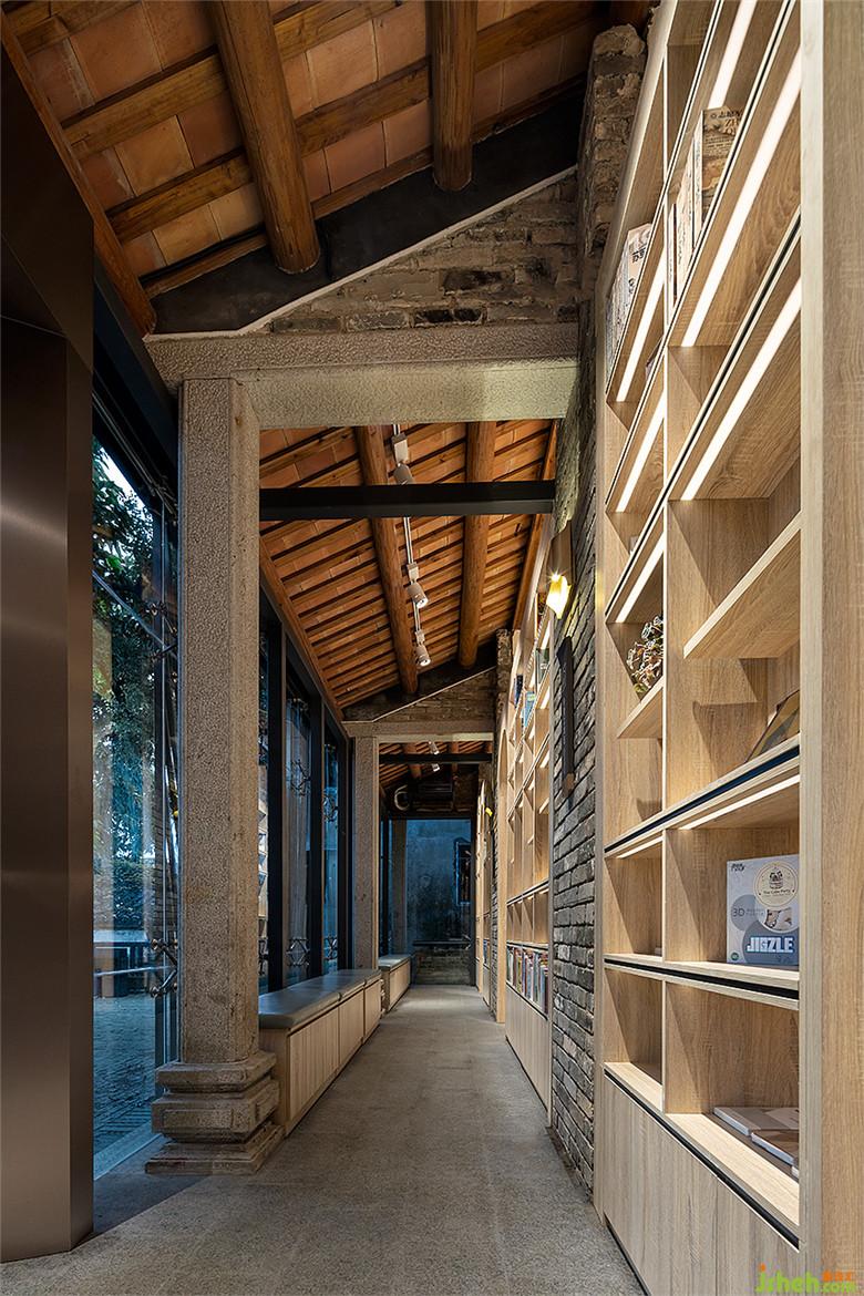 使用流暢的曲線和剛勁有力的直線設(shè)計(jì)的木質(zhì)書(shū)架,配以質(zhì)樸的坐墊和別致的邊幾。讓書(shū)籍和文化以多樣化的形式出現(xiàn)在書(shū)院的每個(gè)角落,在感受時(shí)光流逝的同時(shí),更能讓每一位讀者從中品味到深深的歷史印跡。