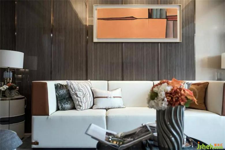 本案陳設(shè)以精品品質(zhì),呈現(xiàn)現(xiàn)代輕奢軟裝設(shè)計(jì),材料上選用木制、布藝、金屬、玻璃及科技木裝飾面,在家具和飾品上擯棄繁瑣的裝飾,用線(xiàn)條元素及簡(jiǎn)潔造型解釋理性主義,空間內(nèi)飽和度較高的橘色與穩(wěn)重的胡桃木飾面碰撞相融,對(duì)比色的運(yùn)用,大膽而靈活,是主人家的個(gè)性展示。