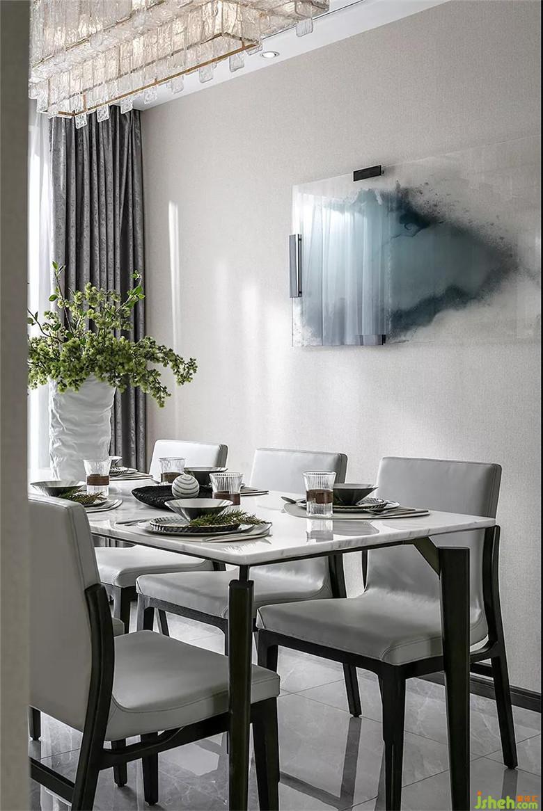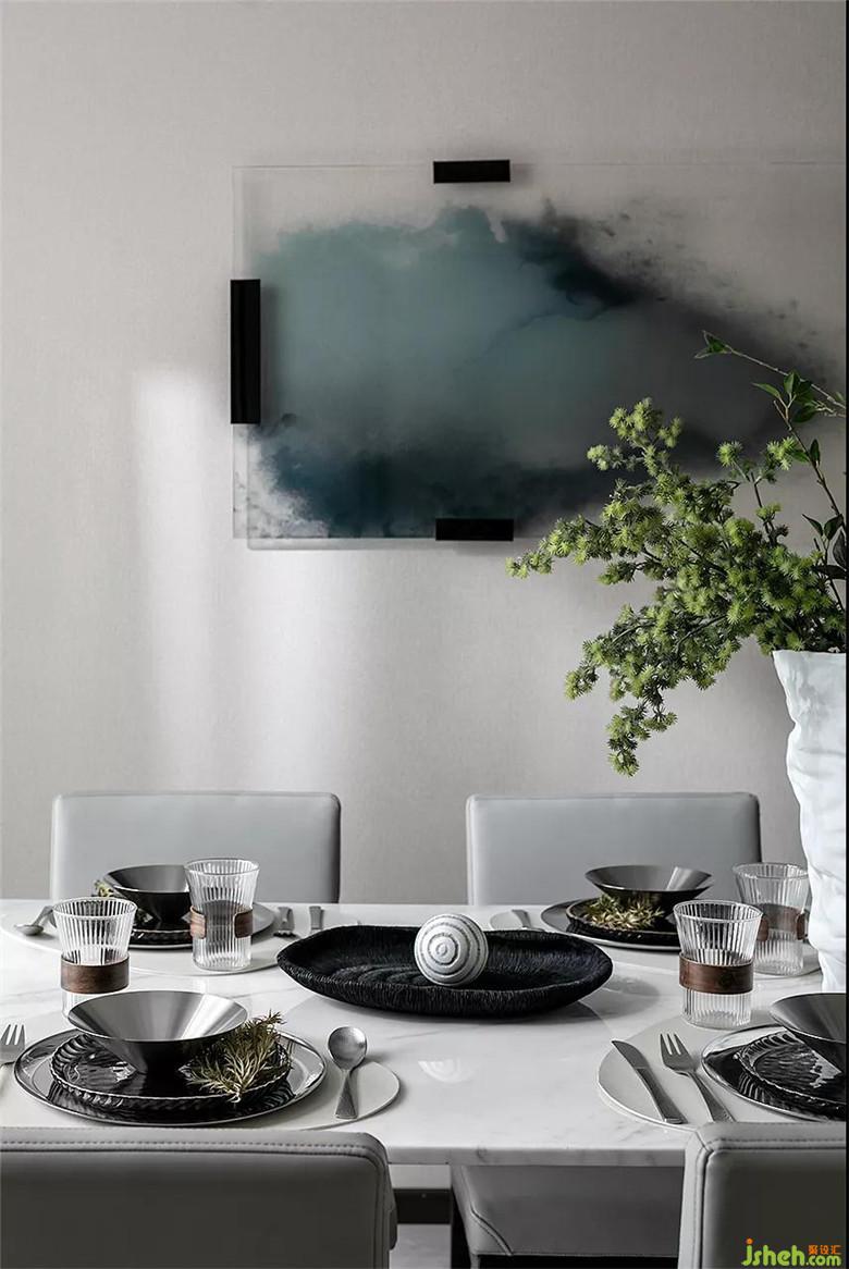 簇?fù)淼木G植裝點著空間,喚醒餐廳的活力。潑墨式手法結(jié)合亞克力的質(zhì)感,使得裝飾畫賦予了空間靈動感。