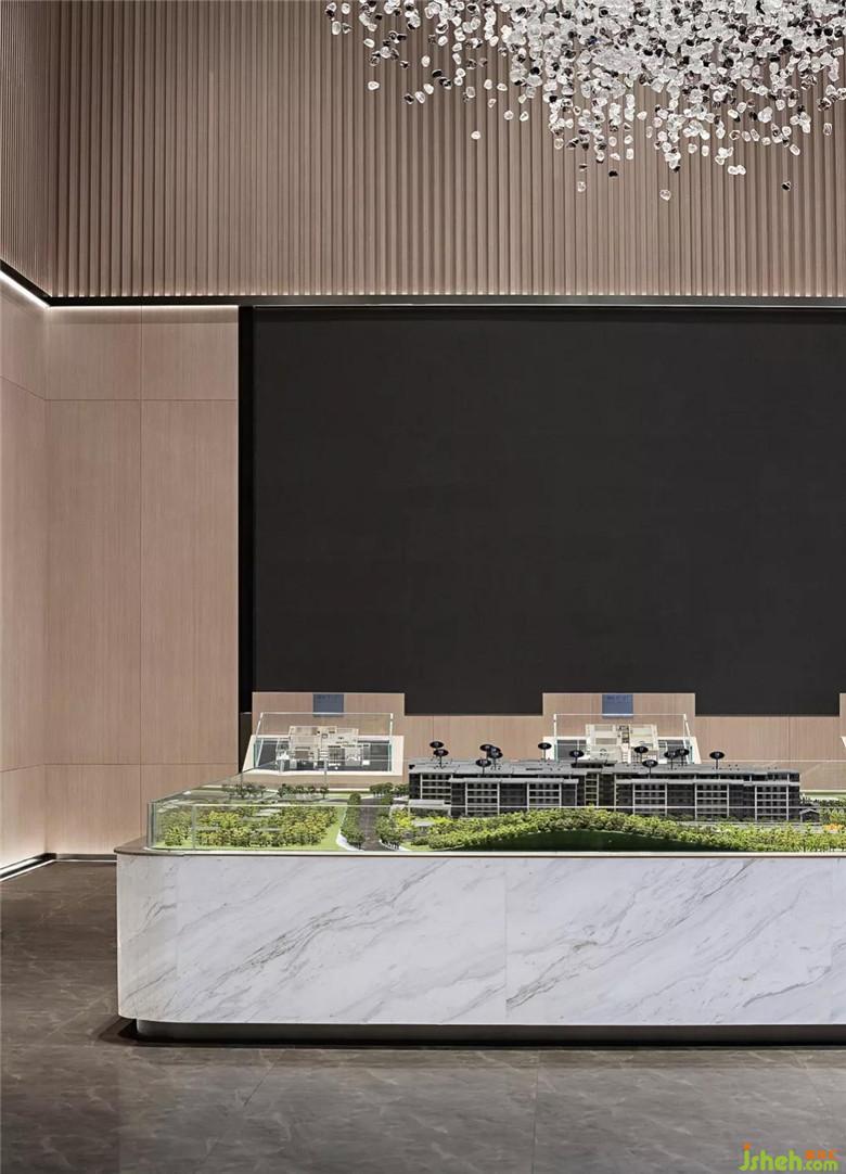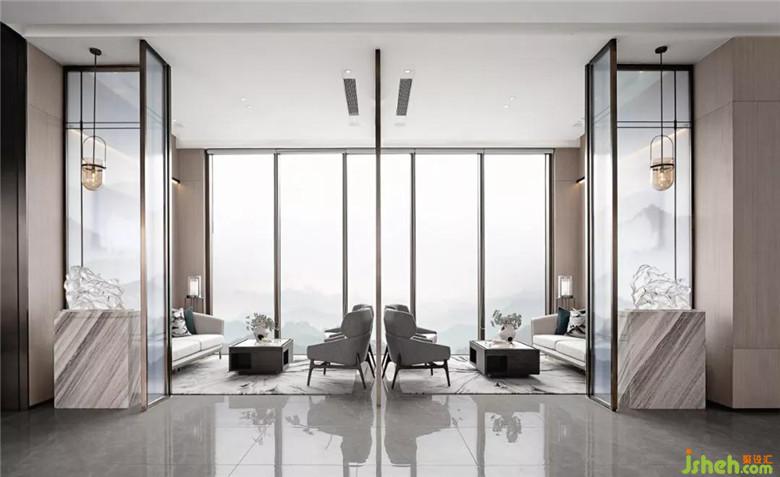 洽談區(qū)座位對(duì)稱排布,疏落有秩,色彩如淡水墨漬染宣紙一般,雅白、卡其、原木色洋洋灑灑揮寫,配合簡(jiǎn)約內(nèi)斂的木材肌理,取得適宜生活的溫度平衡。懸掛的山水紗簾,素雅的瓷器,未經(jīng)打磨的天然原石等,同時(shí)散發(fā)出和諧統(tǒng)一的東方情調(diào)。
