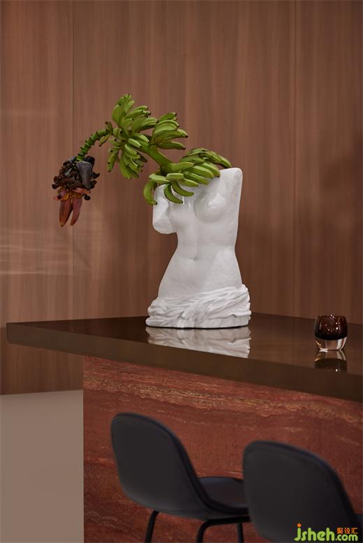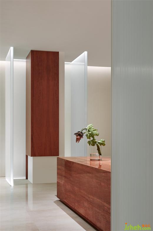 原始空間的結(jié)構(gòu)立柱占據(jù)公區(qū)一側(cè),與其弱化,不如讓其成為天然的置景與置物架構(gòu)。并非為捏造而設(shè)計(jì),解構(gòu)形體之上裝綴材質(zhì),保留內(nèi)部空間的通透而不失豐富的層次,同時(shí)讓單純的結(jié)構(gòu)生長(zhǎng)出實(shí)用性。
