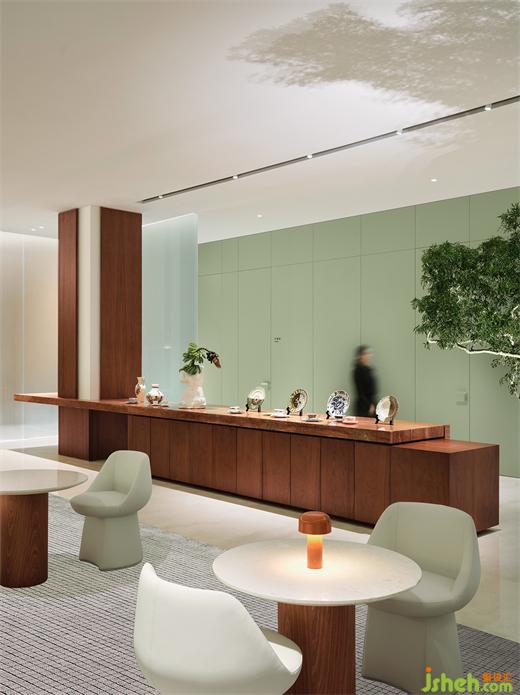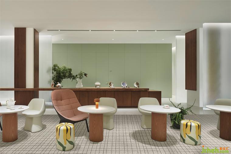 會(huì)員中心設(shè)計(jì)將單側(cè)柱體垂直倒置,通過(guò)咬接與錯(cuò)位,順勢(shì)衍生出展示臺(tái)面,使獨(dú)立間隔的體塊合為完整的功能區(qū)域,盛放多樣化圈層場(chǎng)景,器物特展、茶點(diǎn)賞味、花藝品香,以開(kāi)放的姿態(tài)靜候貴客的沉浸體驗(yàn)。