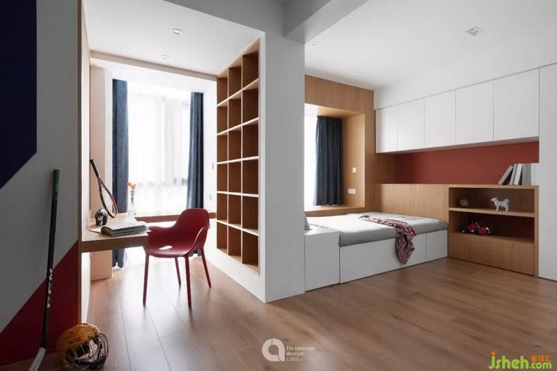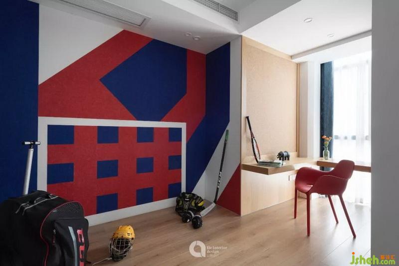 除了對空間整體的規(guī)劃,特意要提到的是空間當(dāng)中的兒童房和活動區(qū)域。設(shè)計師以動靜結(jié)合之妙呈現(xiàn)出整個空間的氛圍:動,既是整體設(shè)計手法運(yùn)用男孩的積木思維來規(guī)劃,以積木之形呈現(xiàn)成長的意義,激發(fā)孩子的想象力;靜,既是以大自然之形,大量地用木飾面作為背景襯托,將皮膚的溫度轉(zhuǎn)化成空間的溫度,意為父母永遠(yuǎn)是孩子堅強(qiáng)的后盾。