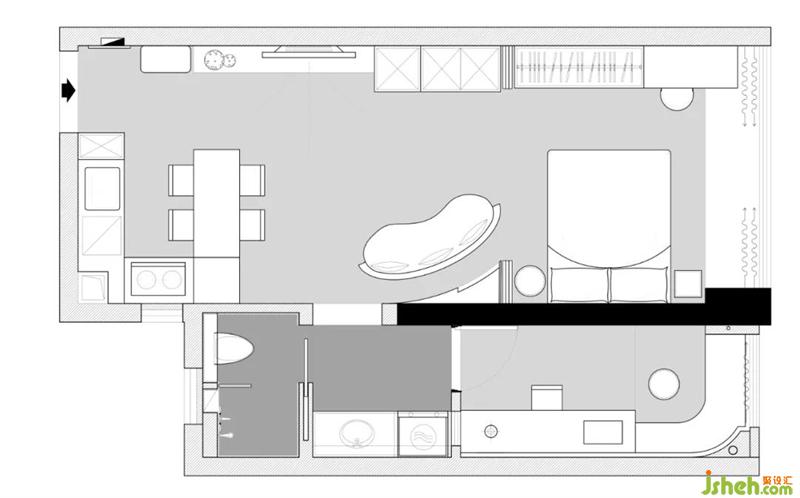 4、 衛(wèi)生間將洗漱臺移出,玻璃隔斷實現(xiàn)干濕分區(qū)。