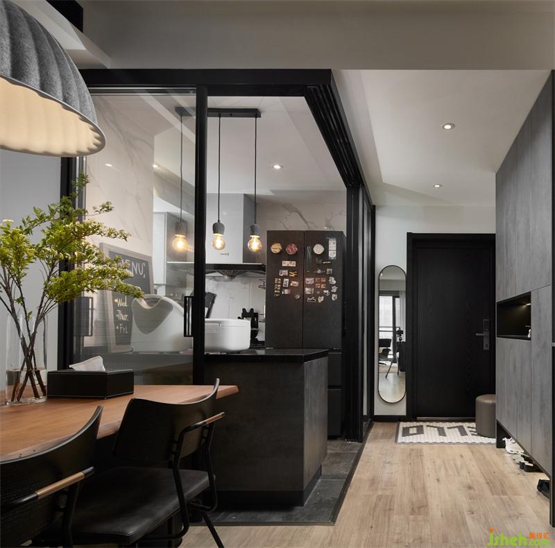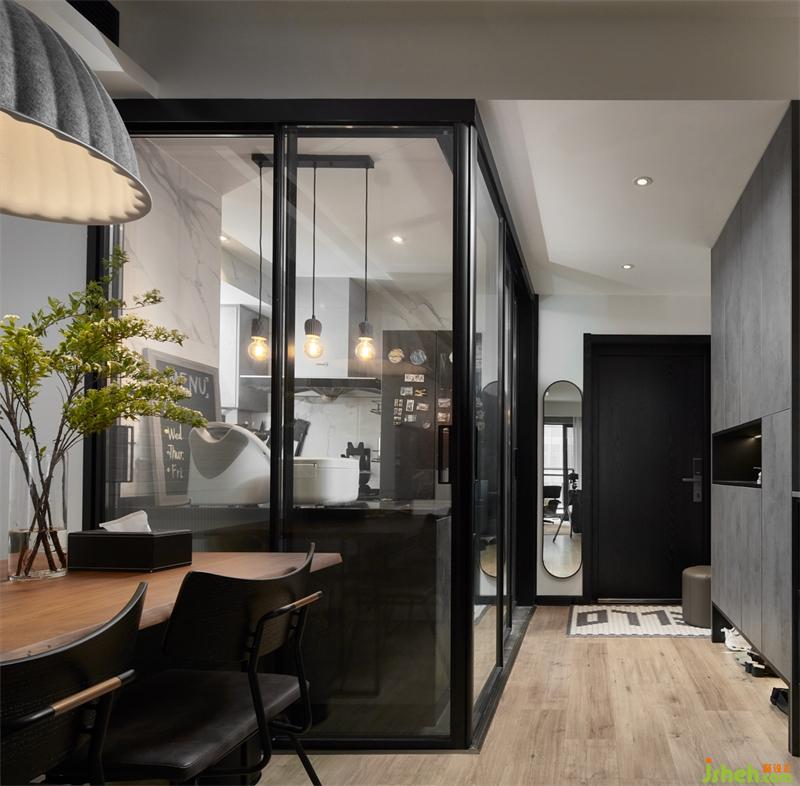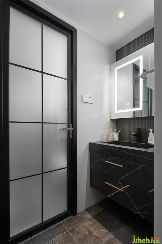 客衛(wèi)將干區(qū)洗漱臺(tái)單獨(dú)分離出來,定制懸空式臺(tái)上盆浴室柜,黑色大理石巖板完美呈現(xiàn)了石材的原生紋理,讓整個(gè)空間時(shí)尚感爆棚。