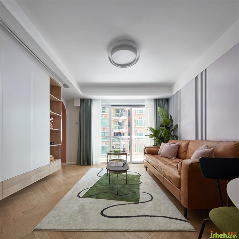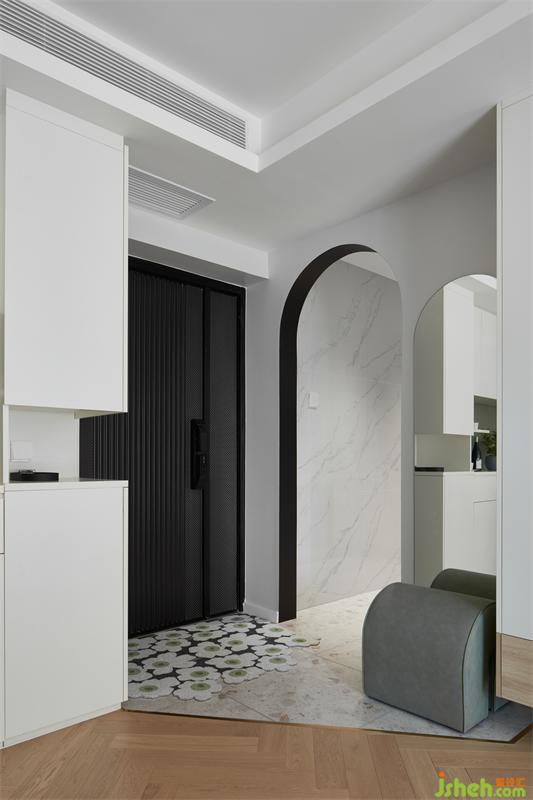 一面是柔和的色調(diào),利落的線條墻面,顯氣質(zhì)的人字拼木地板,拱形門(mén)元素,暖洋洋的陽(yáng)光映照在舒適的沙發(fā)上,整個(gè)空間賞心悅目,又獨(dú)具生活氣息。
